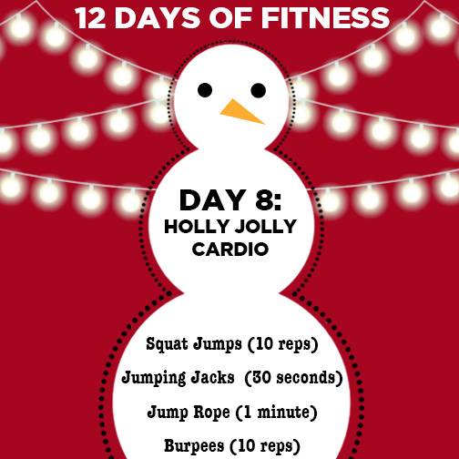 Take your holiday workout routine to another level with our 12 Days of Fitness Challenge! For every themed day, combine a daily challenge like Holly Jolly Cardio with your planned routine or you can repeat the daily workouts 2-3x or as many times as you want!