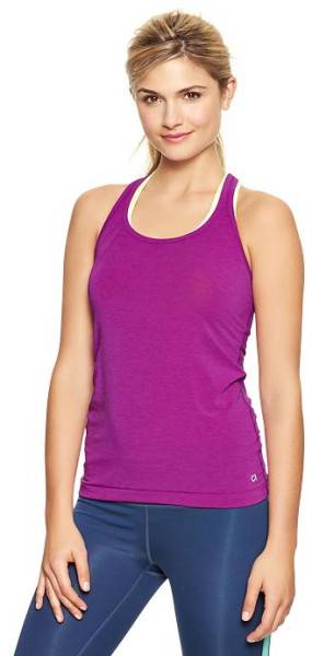 - GapFit Breathe heathered tank ($20) – This breathable, lightweight knit will keep you cool during your workout while pulling them moisture away from your skin to keep you dry.