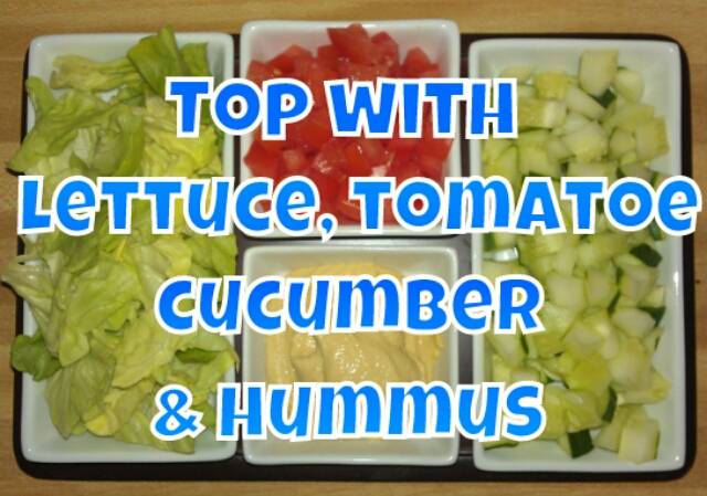 *Serve with whole wheat pita bread, and hummus. I used Trader Joe’s whole wheat mini-pitas, and roasted garlic hummus.